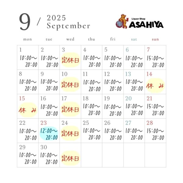 9月営業時間のご案内