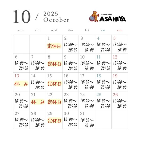 いつもリカーショップアサヒヤをご愛顧いただき、ありがとうございます。